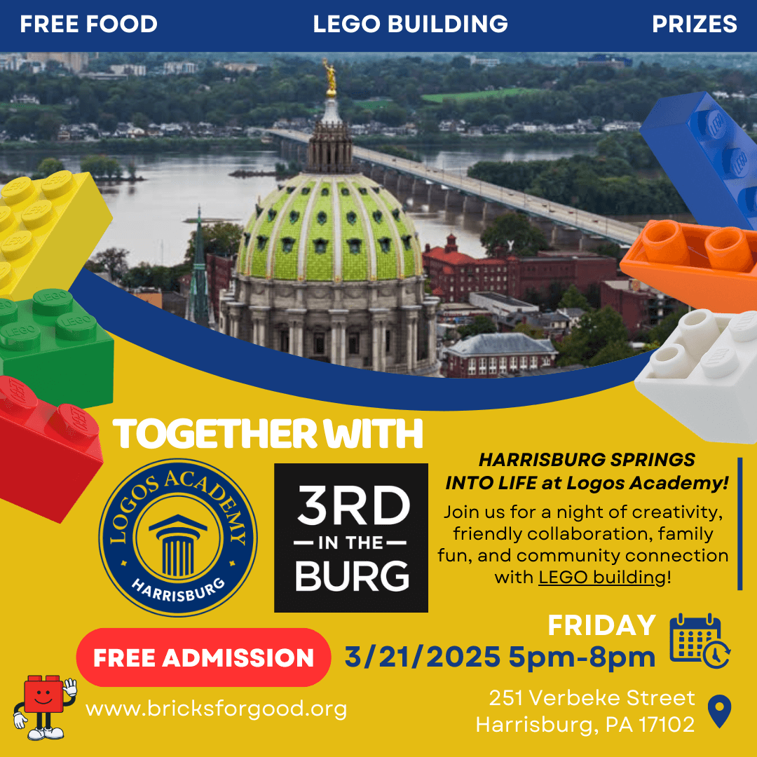 Join us for a night of creativity, friendly collaboration, family fun, and community connection with Logos Academy Harrisburg! Let’s build together as “Harrisburg Springs into Life” one LEGO brick at a time.
