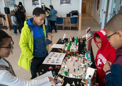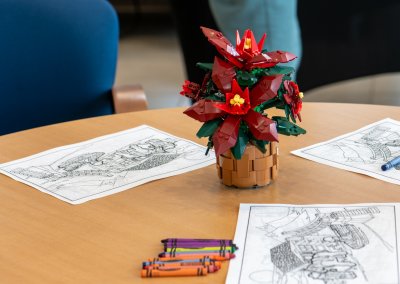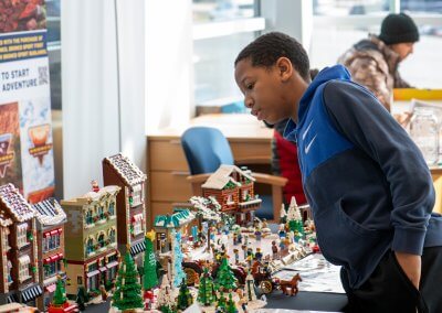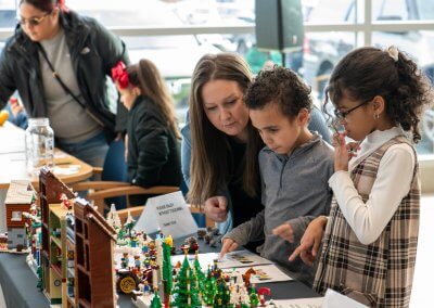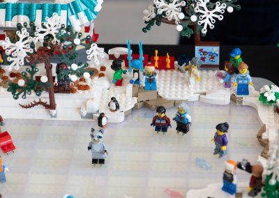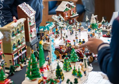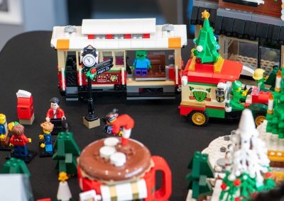 Adding a new twist this year, our Vice Chair, Alex Piscioneri, unveiled a custom LEGO My Own Creation (MOC) Christmas village. Children wandered through the tiny snowy streets, peeking at candy-cane lampposts, miniature ice-skating rinks, and twinkling LEGO lights, as they embarked on a fun scavenger hunt to spot hidden surprises tucked throughout the village. Some kids paused in wonder to admire the intricate buildings, while others raced from one discovery to the next, laughter echoing through the room. The MOC became an interactive centerpiece that brought imagination, curiosity, and extra excitement to the event.